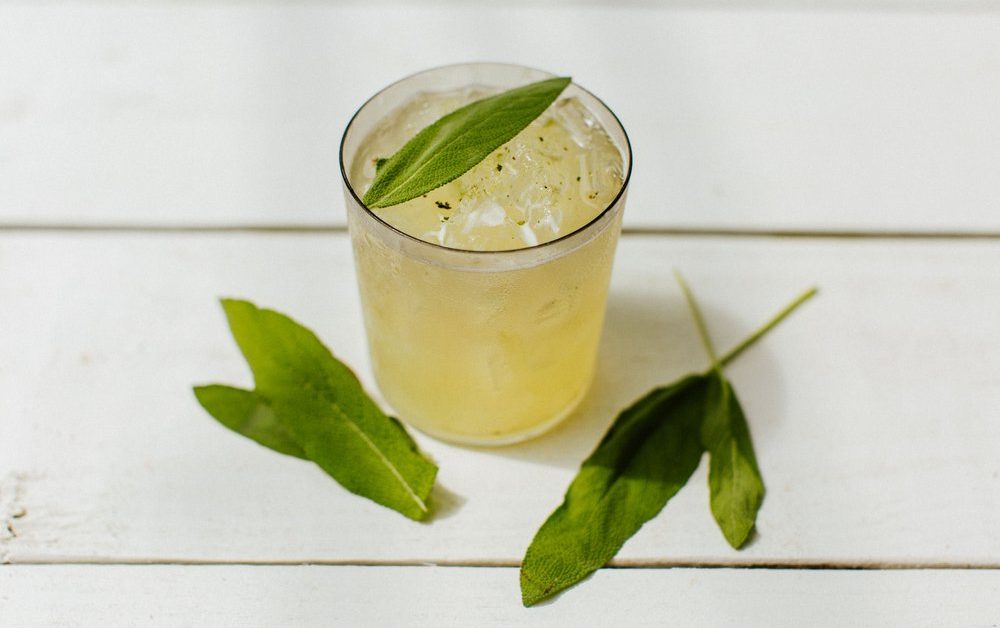 Method: Muddle one slice of Jalapeño into a shaker, add Agave, lime, Mezcal, and tequila, add ice and shake for 10 seconds, strain into a short glass over ice, sprinkle a pinch of salt on top, rub rim of glass with sage leaf for 5 seconds, garnish with sage leaf and slice of jalapeño.
