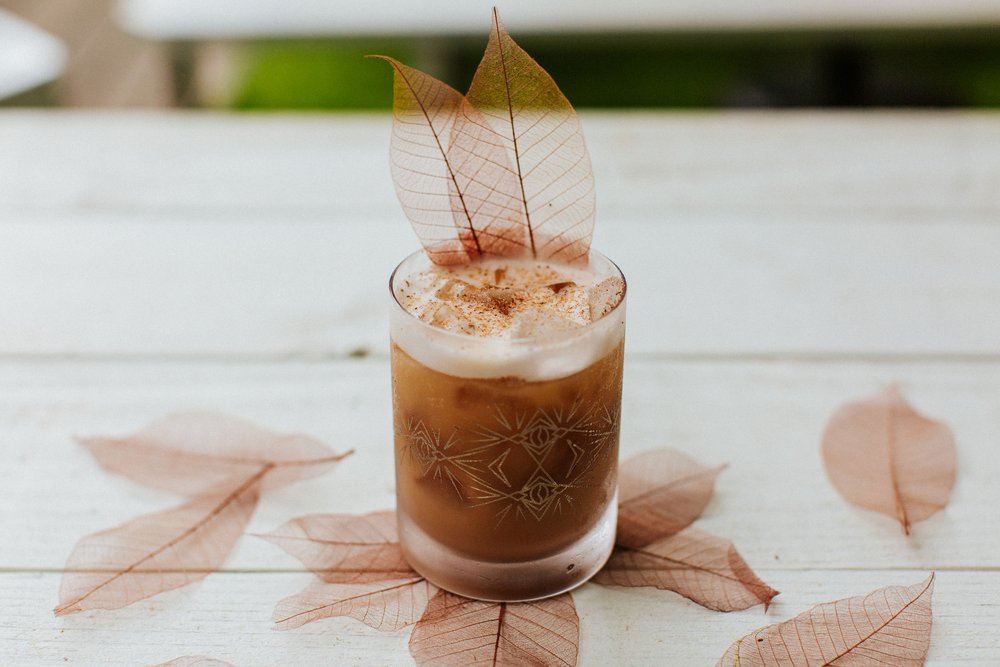 Method: Combine all ingredients into a shaker, add ice and shake for 10 seconds, strain into a short glass over ice, garnish with grated nutmeg and skeleton leaf (optional).