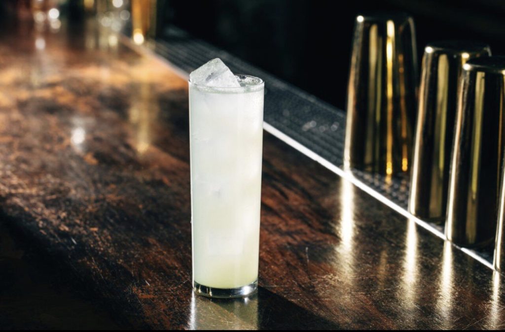 Method: Add all ingredients to a shaker, except for the soda water; add a very small handful of pebble ice and shake the ingredients until the ice has completely melted (until the noise of the ice stops). Then, add 1½ ounces of soda water to the other ingredients inside the shaker and then pour all the contents into a collins glass filled with ice.